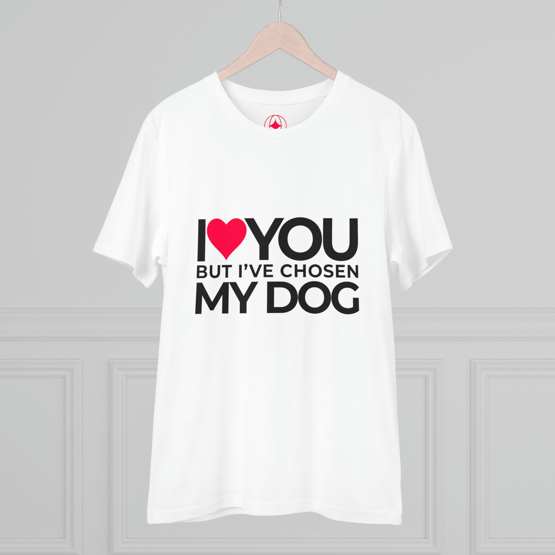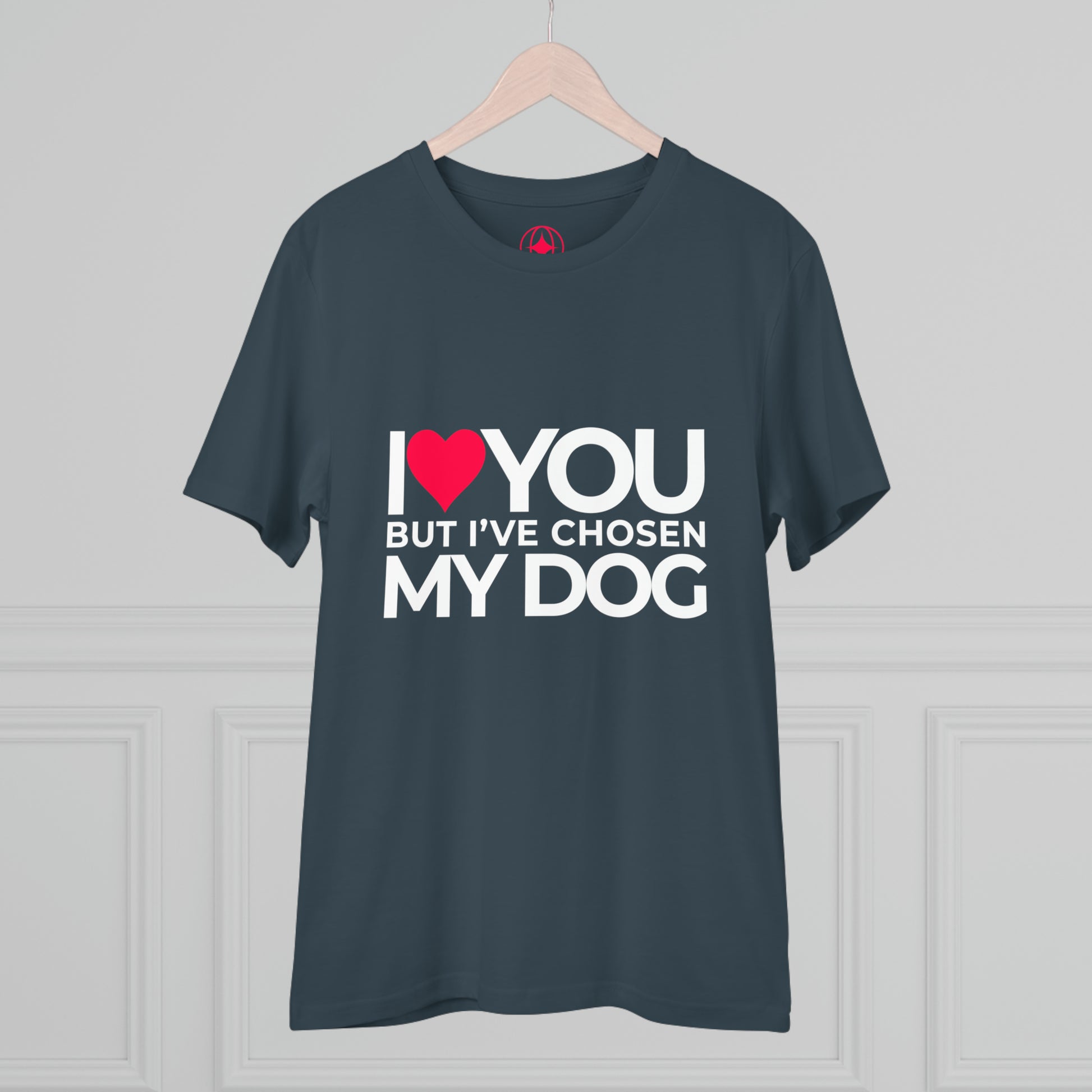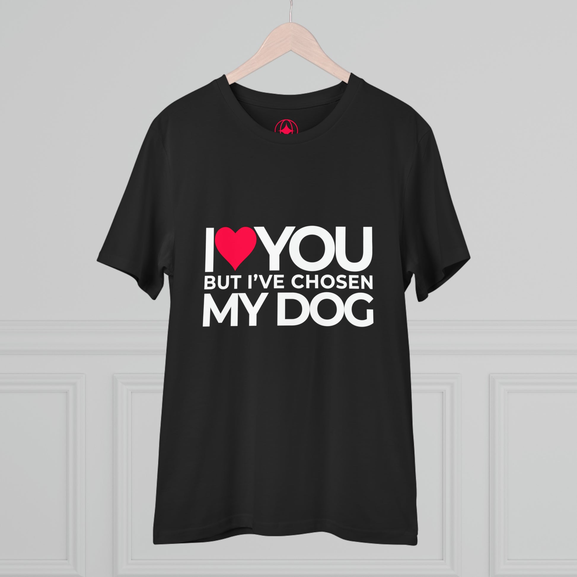 This t-shirt is made from comfortable 100% organic cotton and features a playful statement: "I love you but I've chosen my dog." It's a humorous and affectionate way to express the strong bond between pet owners and their furry companions. The casual design and soft fabric make it perfect for those who appreciate both comfort and a touch of humor in their wardrobe.