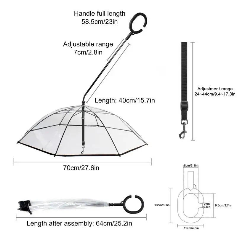 Enhance your furry friend's outdoor experience with our Pet Umbrella for Dogs! Designed with your pet's well-being in mind, this umbrella provides essential protection from rain or harsh sunlight. Say goodbye to wet fur and uncomfortable walks, as our pet umbrella offers a hassle-free solution for a more enjoyable and comfortable outing for your beloved canine companion. Invest in their happiness and make every walk a delightful experience with our Pet Umbrella for Dogs!